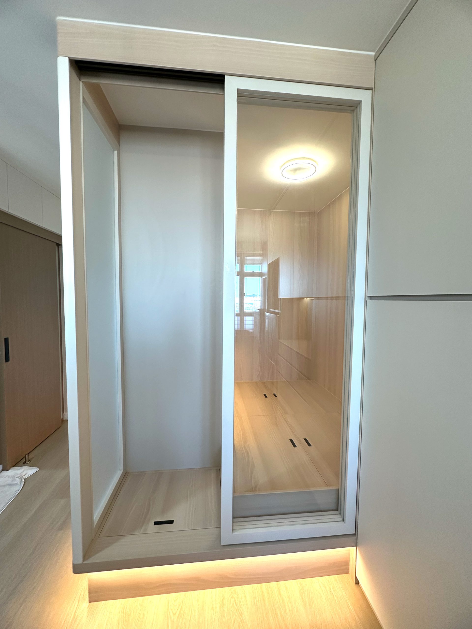 - 最大化收納系統,包括地台,內嵌式櫃體等