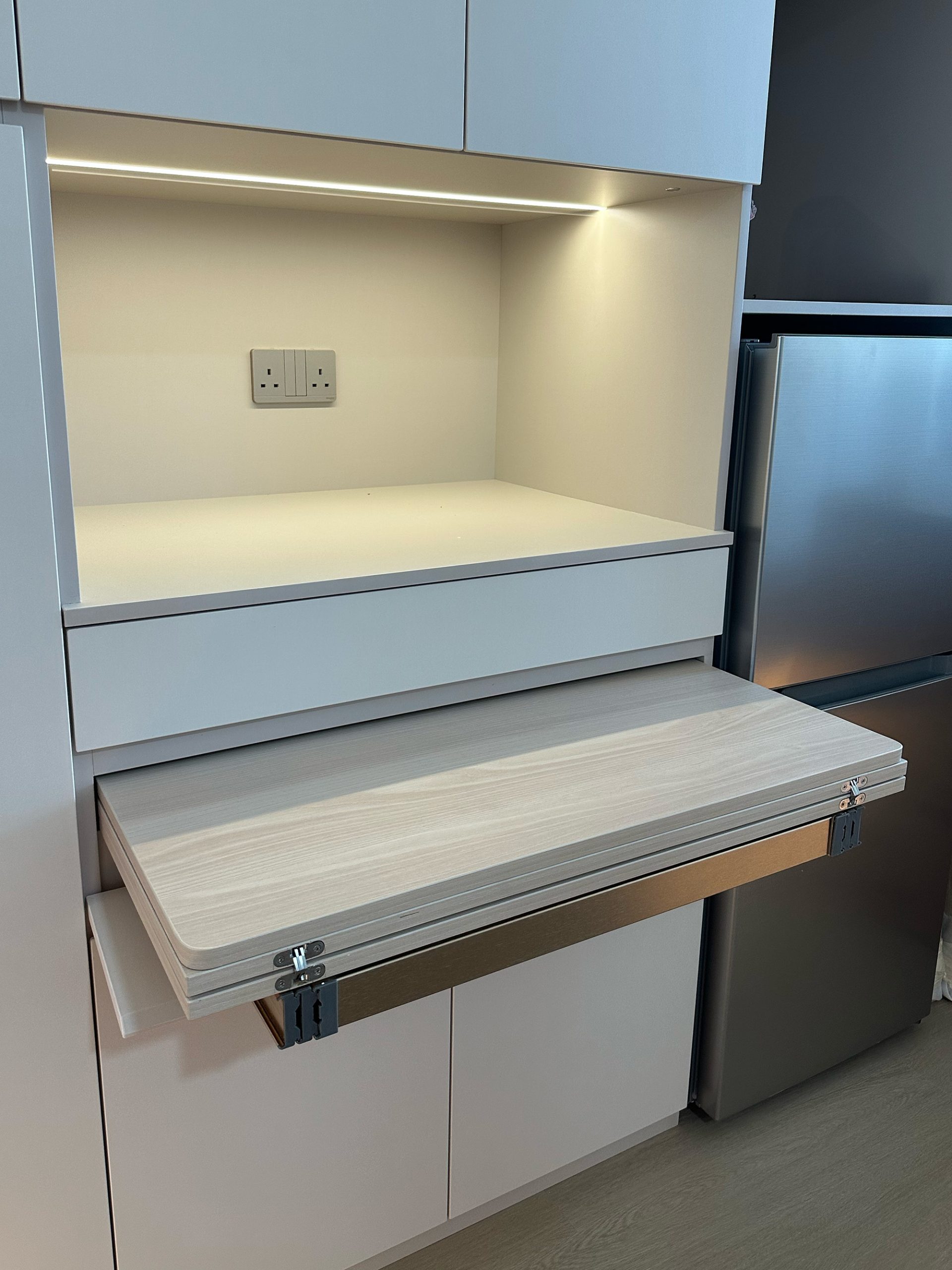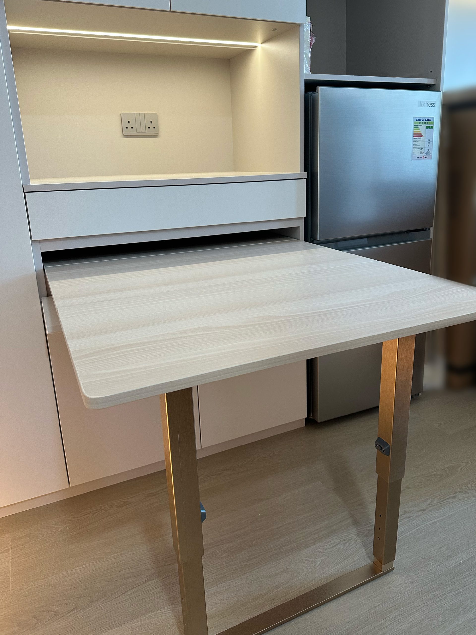- 多功能傢俬,包括可收納餐枱設計,增加空間感